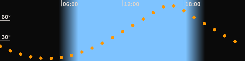 | Höchster Stand (Kulmination) | 16:38 Uhr (h = 82,4°) |