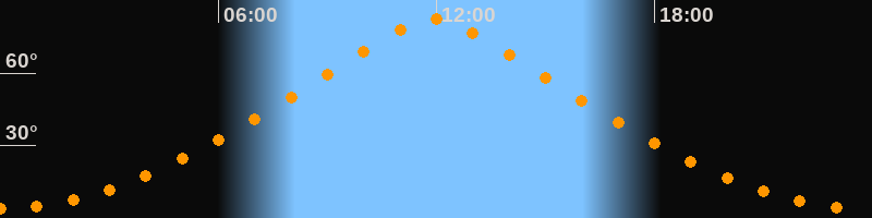 | Höchster Stand (Kulmination) | 11:55 Uhr (h = 82,4°) |