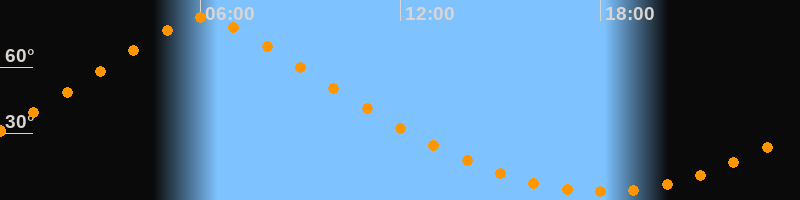 | Höchster Stand (Kulmination) | 06:05 Uhr (h = 82,4°) |