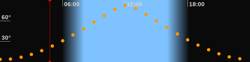 | Höchster Stand (Kulmination) | 12:05 Uhr (h = 82,4°) |