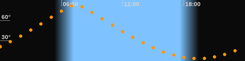 | Höchster Stand (Kulmination) | 07:23 Uhr (h = 82,4°) |
