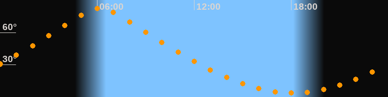 Höchster Stand (Kulmination)06:09 Uhr (h = 82,4°)