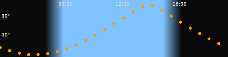 | Höchster Stand (Kulmination) | 15:38 Uhr (h = 82,4°) |