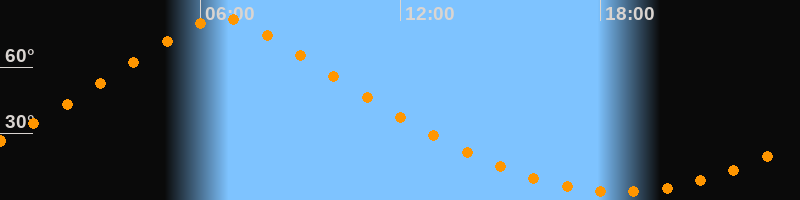 | Höchster Stand (Kulmination) | 06:39 Uhr (h = 82,4°) |