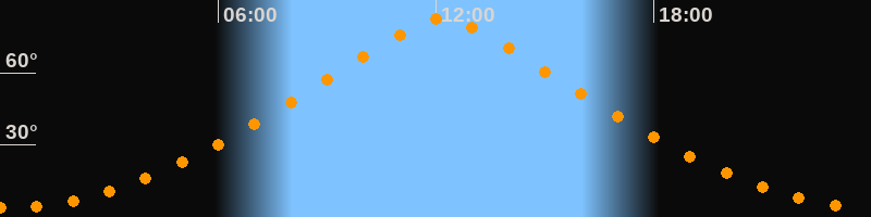 | Höchster Stand (Kulmination) | 12:10 Uhr (h = 82,4°) |
