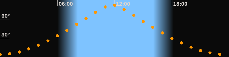| Höchster Stand (Kulmination) | 11:45 Uhr (h = 82,4°) |