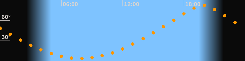 | Höchster Stand (Kulmination) | 19:50 Uhr (h = 82,4°) |