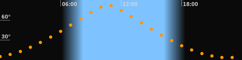 | Höchster Stand (Kulmination) | 10:40 Uhr (h = 82,4°) |