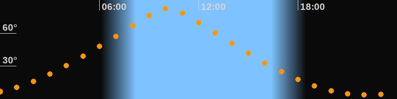 | Höchster Stand (Kulmination) | 10:08 Uhr (h = 82,4°) |