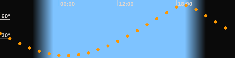 | Höchster Stand (Kulmination) | 18:43 Uhr (h = 82,4°) |