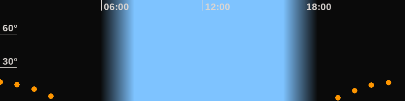 Untergang03:42 Uhr im Südwesten (αAz = 234,3°)