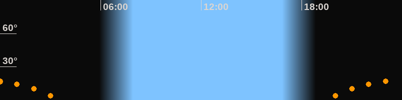 Aufgang19:23 Uhr im Südosten (αAz = 125,7°)