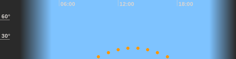 Aufgang09:24 Uhr im Südosten (αAz = 125,7°)