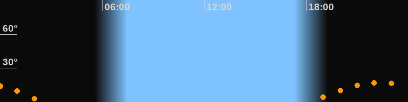 Aufgang18:18 Uhr im Südosten (αAz = 125,7°)
