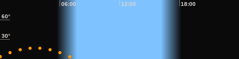 Aufgang23:22 Uhr im Südosten (αAz = 125,7°)