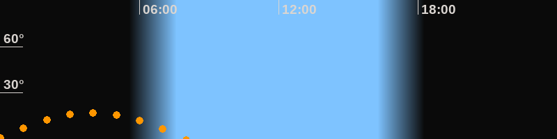 Aufgang23:48 Uhr im Südosten (αAz = 125,7°)