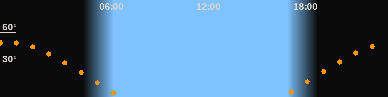 | Aufgang | 17:23 Uhr im Osten (αAz = 70,6°) |