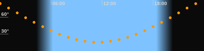 Höchster Stand (Kulmination)23:28 Uhr (h = 85,7°)