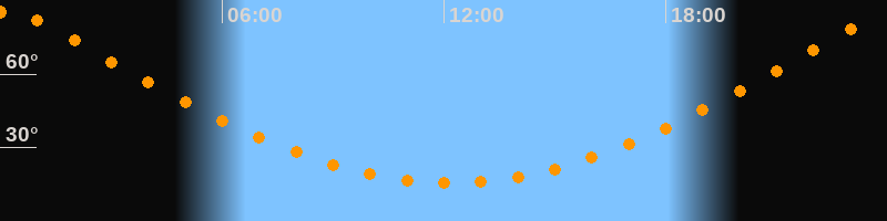 Höchster Stand (Kulmination)00:10 Uhr (h = 85,7°)