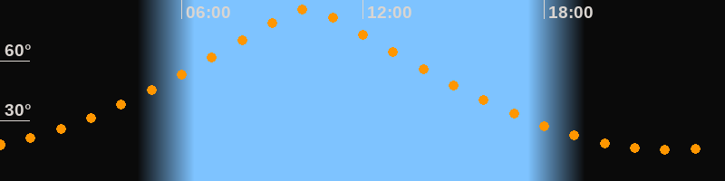 Höchster Stand (Kulmination)10:09 Uhr (h = 85,7°)