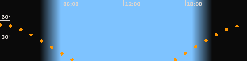 | Aufgang | 16:40 Uhr im Nordosten (αAz = 66,1°) |