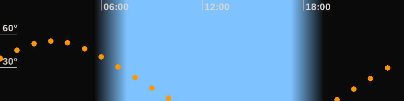 | Höchster Stand (Kulmination) | 03:05 Uhr (h = 53,7°) |
