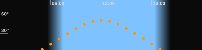| Höchster Stand (Kulmination) | 12:01 Uhr (h = 53,7°) |