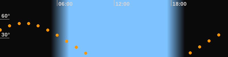 | Höchster Stand (Kulmination) | 02:30 Uhr (h = 53,7°) |