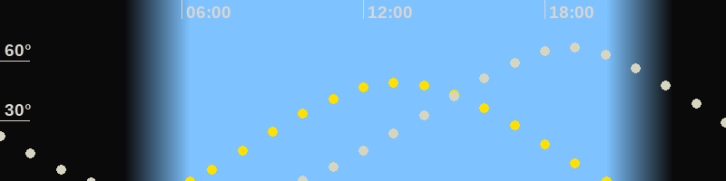 | Höchster Stand (Kulmination) | 18:45 Uhr (h=66.7°) |