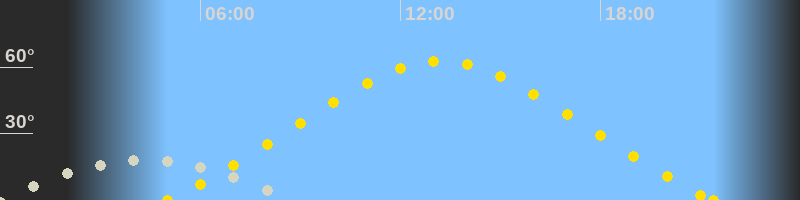| Höchster Sonnenstand (Kulmination) | 13:12 Uhr (h = 62.6°) |