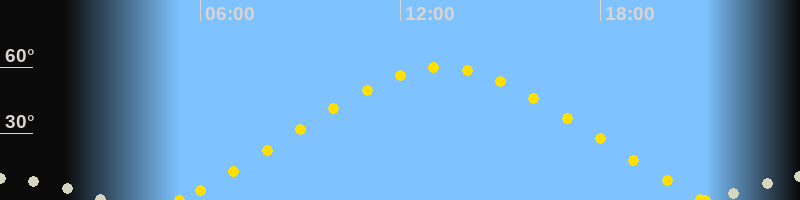 | Höchster Sonnenstand (Kulmination) | 13:16 Uhr (h = 59.9°) |