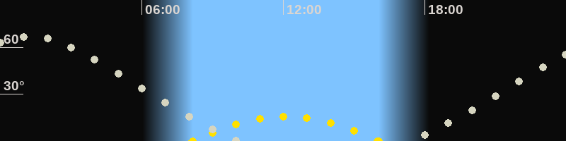 | Höchster Sonnenstand (Kulmination) | 12:06 Uhr (h = 15.9°) |