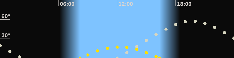| Höchster Sonnenstand (Kulmination) | 12:16 Uhr (h = 17.1°) |