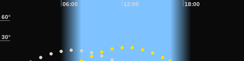| Höchster Sonnenstand (Kulmination) | 12:22 Uhr (h = 20.1°) |