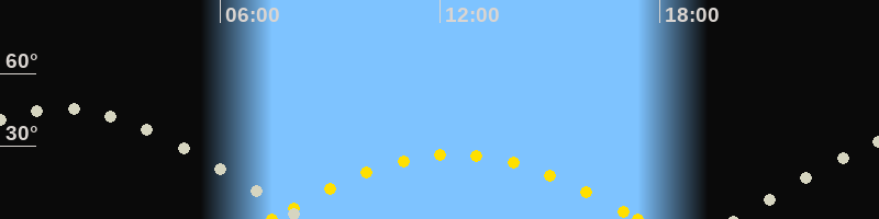 | Höchster Sonnenstand (Kulmination) | 12:24 Uhr (h = 26.7°) |