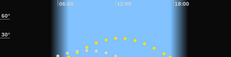 | Höchster Sonnenstand (Kulmination) | 12:23 Uhr (h = 29.9°) |