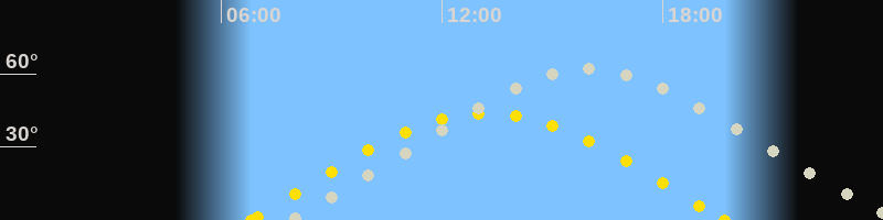 | Höchster Sonnenstand (Kulmination) | 13:14 Uhr (h = 43.9°) |