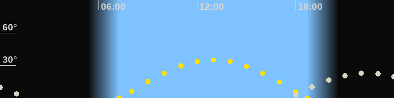 | Sonnenaufgang | 07:14 Uhr im Osten (αAz = 95.5°) |