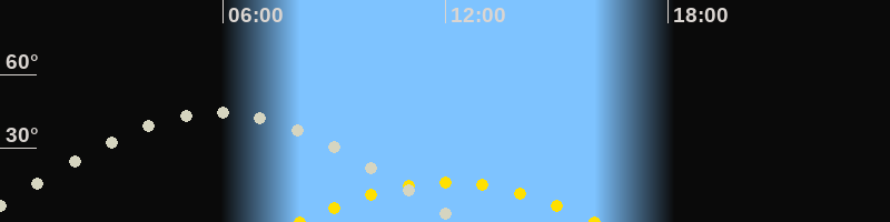 | Höchster Sonnenstand (Kulmination) | 12:03 Uhr (h = 16.2°) |