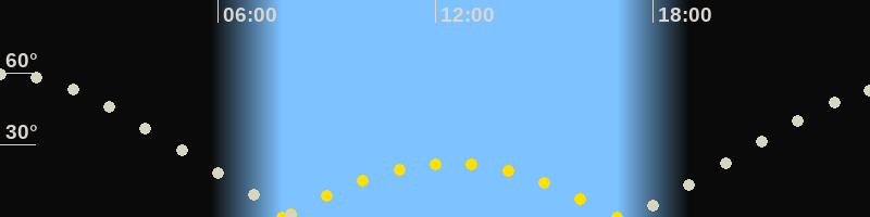 | Höchster Sonnenstand (Kulmination) | 12:23 Uhr (h = 22.4°) |