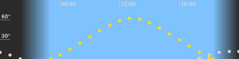 | Höchster Sonnenstand (Kulmination) | 13:14 Uhr (h = 62.1°) |