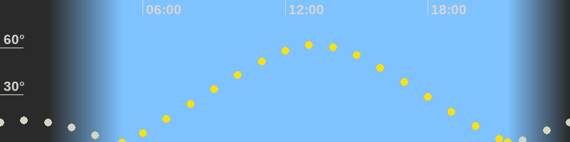 | Höchster Sonnenstand (Kulmination) | 13:15 Uhr (h = 61.8°) |