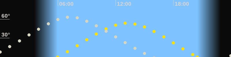 Höchster Stand (Kulmination)07:12 Uhr (h=62.9°)