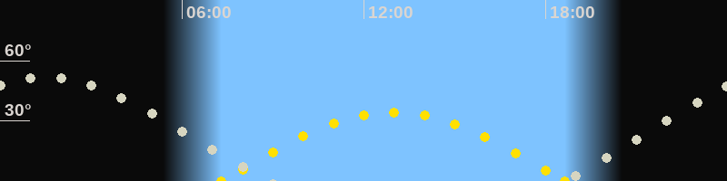 | Sonnenaufgang | 07:18 Uhr im Osten (αAz = 96.9°) |
