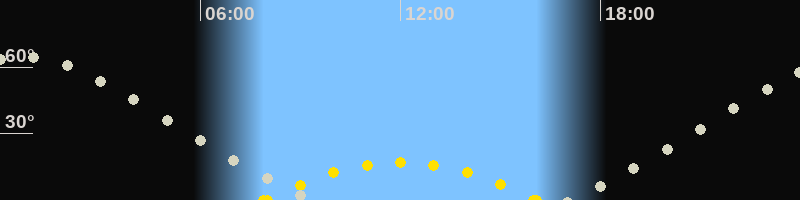 | Höchster Sonnenstand (Kulmination) | 12:00 Uhr (h = 17.1°) |