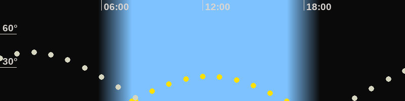 | Höchster Sonnenstand (Kulmination) | 12:23 Uhr (h = 22.2°) |