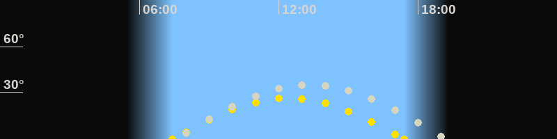 | Höchster Sonnenstand (Kulmination) | 12:24 Uhr (h = 26.7°) |