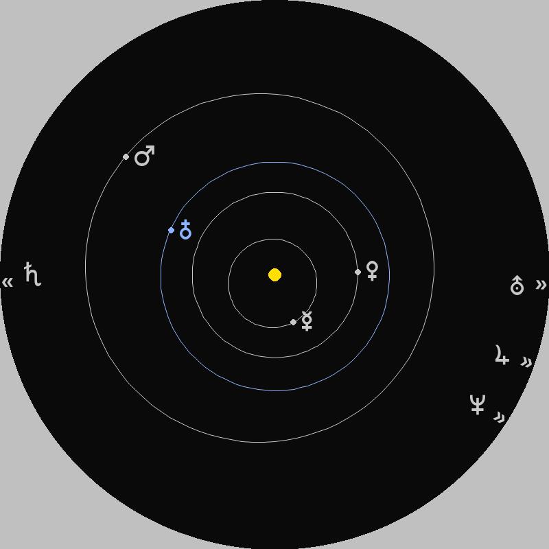 | f Merkur g Venus l Erde h Mars j Jupiter S Saturn A Uranus G Neptun |