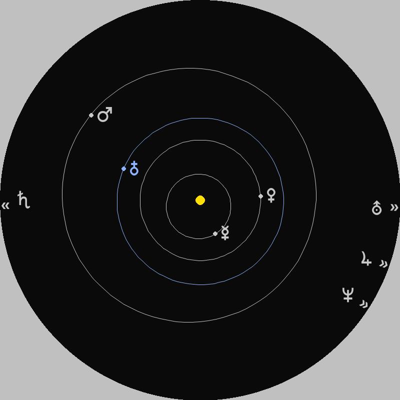 | f Merkur g Venus l Erde h Mars j Jupiter S Saturn A Uranus G Neptun |