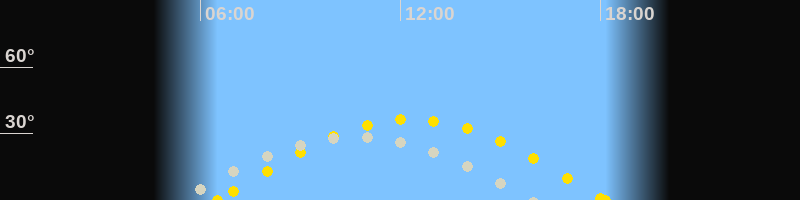 Höchster Sonnenstand (Kulmination)12:19 Uhr (h = 36.4°)